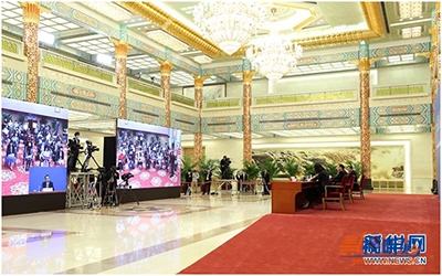 ▲全国两会·梅地亚新闻中心洲明UMini大屏(图片来自新华网)