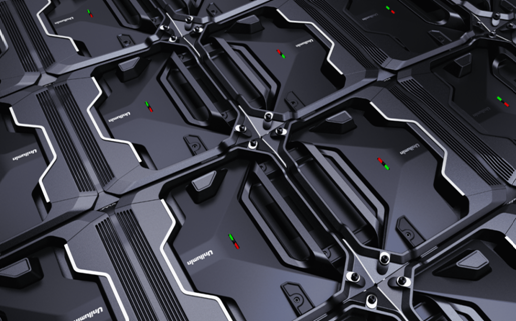 具体来讲,Uslim系列产品在面板上使用分色区遮喷工艺,既突显出“跑道圆”视觉中心,又完美串联起产品独立的功能区域。洲明以设计的整体性与连贯性,彰显产品独特的科技美感。