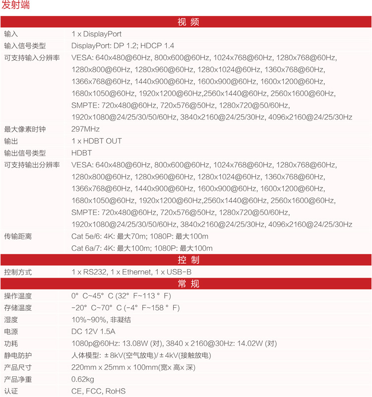 支持DisplayPort 1.2,分辨率高达4k@30Hz,支持并兼容HDCP1.4