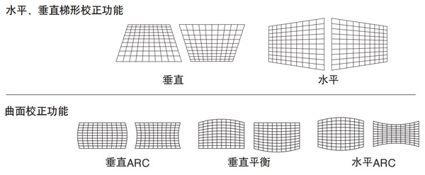 • 具备水平、垂直梯形校正、曲面校正功能,可将变形的图像调整至理想状态。