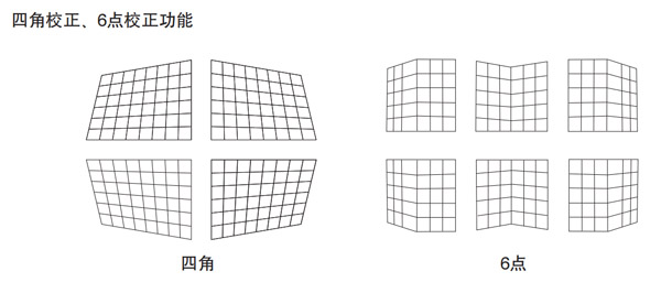 • 可以实现四角校正和六点校正,对画面各个角及中上、中下两点进行单独调整,确保投影画面的准确性。