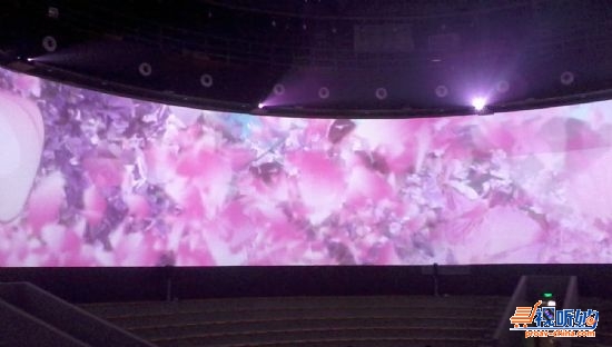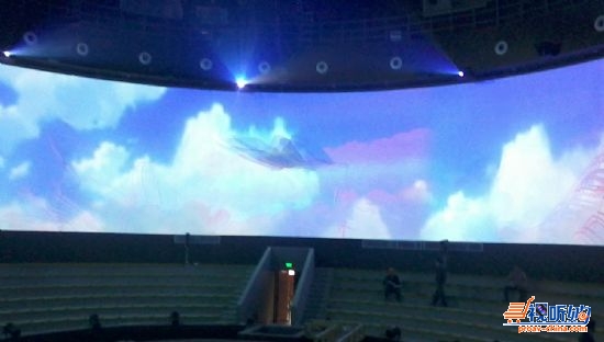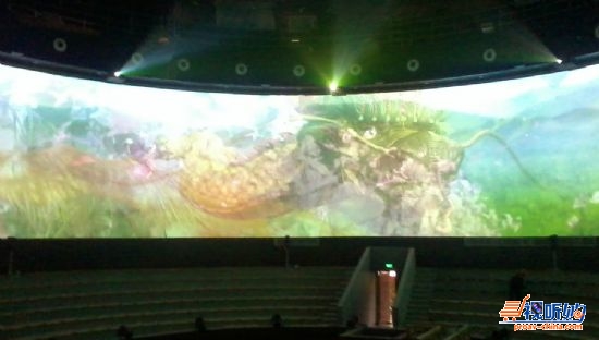 该360°环幕表演大厅项目对投影机提出了较多挑战:1)由于场地情况,需要采用正投,因此,,要求投影机噪音低以保证观众舒适的观影体验。2)作为商业运营场所,要求投影机全天开机,因此投影机需要支持7×24小时和完善及时的售后服务。3)为了保证完美的融合画面效果,要求所选投影机具有优秀的色彩一致性。经过多方考察,项目方最终选择了赢康科技公司提供的投影方案,选择了9台科视M系列投影机——HD10K-M。该投影机拥有10000ANSI流明亮度,1920×1080P高清分辨率,保证了高亮高清的画面效果,且M系列投影机内置曲面矫正和融合功能,可以解决外部融合器没有曲面矫正功能的问题,完美地实现了大尺寸画面无几何变形,平滑融合的效果。另外,M系列投影机体积小,稳定性高,噪音低,支持7X24小时并质保3年。