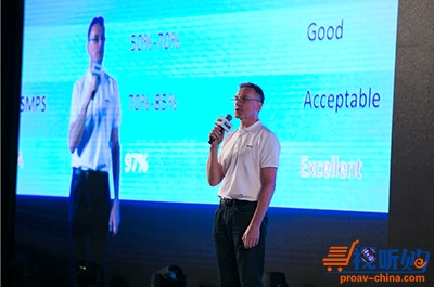 Redx高级主任工程师Jeffrey Vallier向大家讲解了SSA技术与音频传输技术的结合,以及互联网供电的概念。