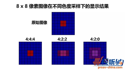 除4:4:4的全色度采样规格之外,其它采样规格,都会产生一些压缩失真,这种失真在大部分情况下不是很明显,但在色彩过渡较锐利的边缘体现就会比较明显。