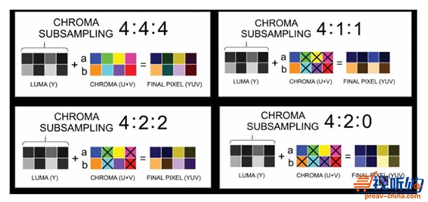 色度采样是为了在更低的带宽传输更多的视频信息而进行的不同采样比的压缩方式,是视觉专家在根据人眼对亮度分辨率的敏感度高于对色彩分辨率的敏感度而研究出来的。