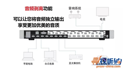 每一个HDMI的输出口都设有音频剥离的独立接口,以保证所有视频源的音频都可以独立输出到更加优质的音响系统,让您享受更加优美的音质。