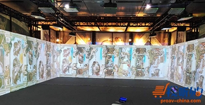 在本次巡展的AV和动态多媒体展示部分,力创昕业提供了Canon WUX450ST投影机6台,其中5台投单独画面,1台备用。Canon SX6000投影机22台(3台备用),其中9台3折幕融合,6台墙面地面画面融合。
