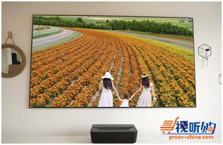 虽然落地玻璃窗引入了一地美好的阳光,但和煦的阳光并没有阻碍Fay在客厅的观影体验,即使是家里最明亮的空间,灵动的图象依然清晰。