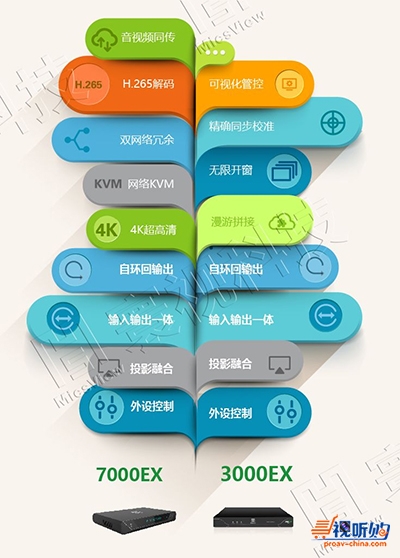 本项目中,用户选取7000EX及3000EX一体化分布式云节点分别用于超长拼接屏、各类会议室及控制模块、主机信号调用的KVM控制系统等的输入或输出节点。寰视科技MicsView旗下的EX系列一体化分布式云节点含7000EX、3000EX等,是针对新一代云可视化指挥调度应用倾力打造,集视频采集、拼接输出、外设控制、KVM交互协作、双冗余备份等多功能于一体。满足快速构建显控一体化系统的需求,为各种指挥调度、会议协作、综合控制提供高效、便捷、可靠的云接入解决方案,称得上:构建分布式可视化系统,有MicsView的7000EX/3000EX就够了!
