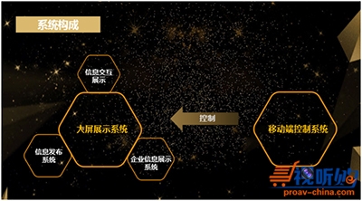 该系统包含信息交互展示、信息发布、企业信息展示三大功能模块,可根据展示场合、用途的改变切换展示模块;并且展示风格也可随时切换,可科技、可严肃、可活泼、可炫酷,整个操作只需要由一个pad智能控制。