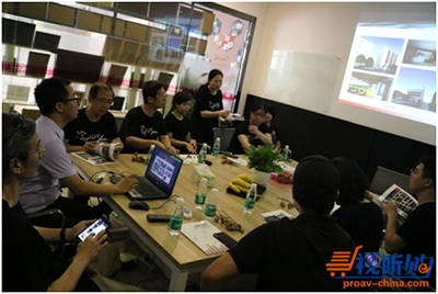 一行专家及领导于会议室观看公司案例作品,畅谈经验,并根据公司现状和发展,提出宝贵意见。