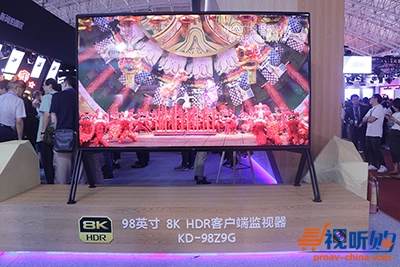 索尼现场展示了两款8K电视,分别为98寸和85寸。其中98寸的8K电视,还原用UHC-8300拍摄的8K素材。85寸的8K电视改造为“客户端监视器”,配合8K广播级摄像机UHC-8300展出。