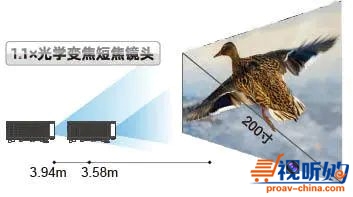 0.81~0.89:1短焦镜头升级投射比指标,无光损,亮度无衰减,亮度输出更充沛。支持1.1倍光学变焦,在短距离安装具有更大的环境适应性。