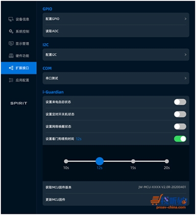 智微智能拥有完整的ARM研发体系,其软件团队具备各种定制化开发能力。智微智能直击客户痛点,打造业界首款界面化API调用工具SPIRIT软件。利用SPIRIT,客户通过软件界面即可完成安卓系统配置,如定时开关机、定制开机动画、设置导航栏,保障播放内容的显示效果、看门狗设置,实现宕机重启等功能,降低技术门槛,节省人力资源,控制产业成本,简化后期运维,为客户创造更多的价值。