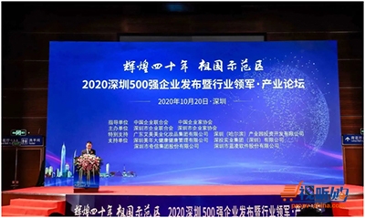 10月20日下午,由深圳市企业联合会、深圳企业家协会等主办的“辉煌四十年、祖国示范区”2020 深圳 500 强企业发布暨行业领军产业论坛在深圳会展中心隆重举行。