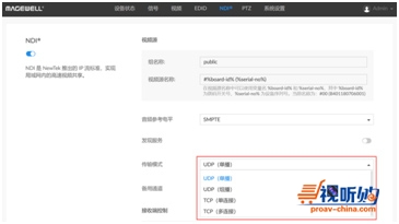 想要设置传输模式的选项,用户需要登录编码器Web UI,在“NDI®”页签中点击“传输模式”栏右侧箭头,在弹出的下拉栏中选择一种传输模式,下拉到页签最后,点击“应用”即可。默认设置是TCP(多连接)。