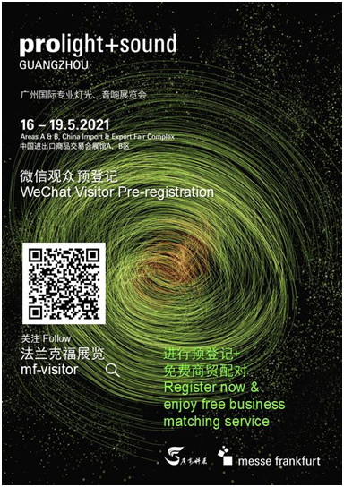 第十九届广州国际专业灯光、音响展览会(下称广州展)将于2021年5月16至19日在中国进出口商品交易会展馆A、B区盛大举行,观众预登记系统正式上线与大家见面啦!