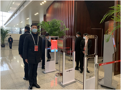 代表们经过签到门,代表证中的芯片就会被签到门自动识别,显示屏会即时显示代表信息,告知代表座位信息,同时代表座位上的表决器也呈现开启状态。