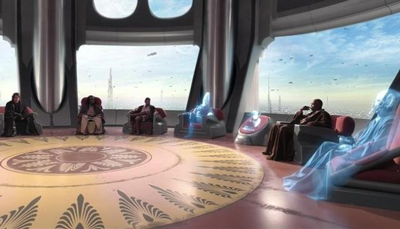 《星球大战》系列里,绝地武士只需要通过一个指南针大小的设备就可以与他人进行全息式视频通话;相隔几个星系的角色们,可以通过全息影像,进行实时语音通讯。《星球大战7》甚至用全息投影投射出了最终反派大佬的身影。