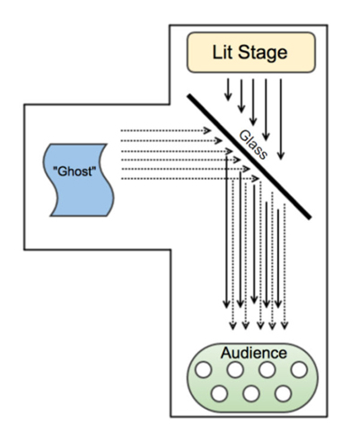 那么这些商业活动中所谓的全息投影的原理是什么呢?我们叫做“佩珀尔幻像”。