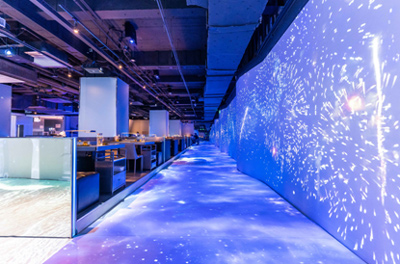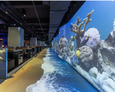 全息餐厅主要结合当前裸眼3D技术、全息成像技术,配合现场的舞台灯光效果定制独特的专项主题餐厅,全息餐厅可根据客户的要求定制专属主题,主要有生日宴会、结婚宴会、娱乐庆典、企业发布等功能。让“味觉、视觉、听觉、触觉、嗅觉”整合在一起,在品尝美食的同时又能感受到声、光、乐结合带来的震撼,从而给人带来一种全新的体验。