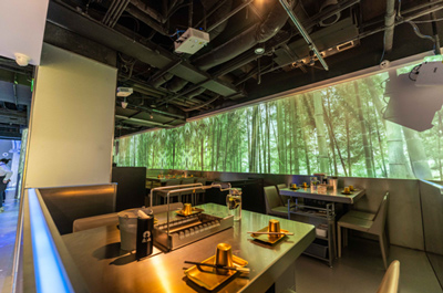 由上海凡否专业打造的出山烧烤上海网红店,网红全息投影餐厅。