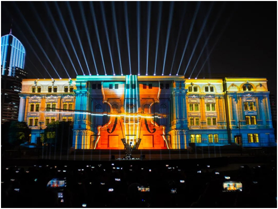 顶级的内容,更需要与之相配的顶尖设备,上海指光文化应用20台巴可UDX系列投影机,发挥稳定高亮度输出和宽广色域等优势,让巨幅的影像与上海音乐厅宏伟的外观融为一体,完美呈现在上海乃至全国、全球观众眼前。