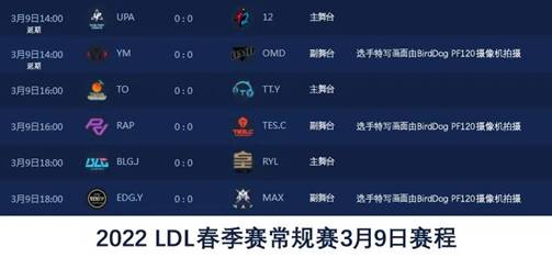 2022英雄联盟职业发展联赛(LOLDevelopment League)春季赛常规赛,3月9日三场次6组比赛,其中副舞台(RAP vs TES.C / EDG.Y vs MAX / YM vs OMD)的选手特写画面由BirdDog PF120摄像机拍摄。