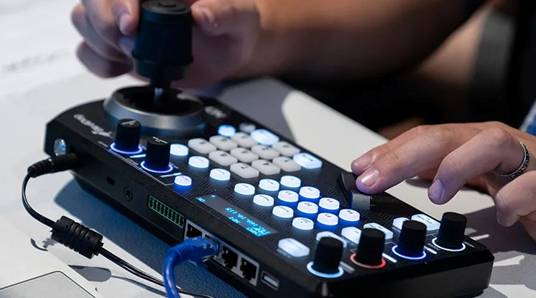 Full NDI控制键盘支持多种协议(VISCA、VISCA over IP、NDI、Pelco D/P)和多接口(RS232、RS422、IP),最多支持接入255台摄像机,可对接入的摄像机进行变倍、平移、倾斜等操作,甚至可直接通过旋钮来调整图像参数(曝光、白平衡等)。