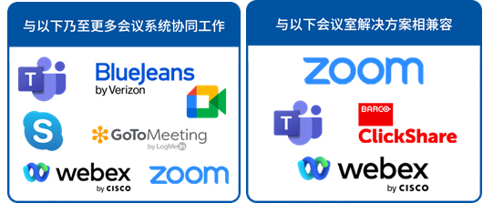 支持Microsoft Teams、Zoom、Adobe Connect、BlueJeans、Cisco WebEx、FaceTime、谷歌Meet、GoToMeeting、LifesizeClearsea及Skype等