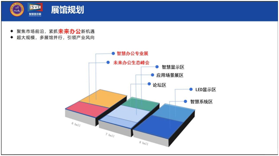 2023 CBDS & ISVE聚焦市场前沿,采用AI硬件系统集成+场景创新体验,根据不同的主题划分若干场景应用展示区。除显示触控区、商显终端区、LED商显区、商显软件区、商显配件区五大展区外,新增未来办公专业展,紧抓未来办公新机遇,协办单位言心办公赖培山总经理围绕办公系统软件方案、音视频系统、网络数字化方案、文印解决方案几大专区介绍未来办公主题展相关情况。同期“未来办公生态峰会”预计5000人左右,聚齐渠道商,系统集成商参加。2023 ISVE努力打造3+365天永不落幕的商贸对接会。通过以会带展,主论坛+分论坛三大板块联动,为商用显示系统产业发展、企业成长提供创新价值。