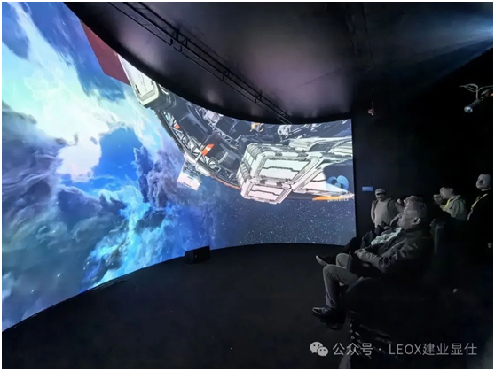 • 以高清沉浸式弧形画面做影像渲染显示,搭配特效动感座椅,让观众置身于我们营造的AI空间当中,更沉浸地感受科技与未来的结合,从而体验出裸眼3D效果。