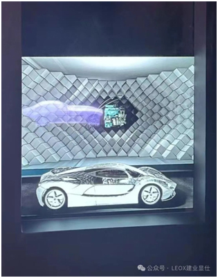 • 本展项应用LEOX建业显仕P1.86 SMD LED箱体,实现一组特装形象墙,可以随着内容的变化为场景带来装修风格的更替,应用创新的图像处理算法结合定制三维片源,可实现裸眼3D体验。