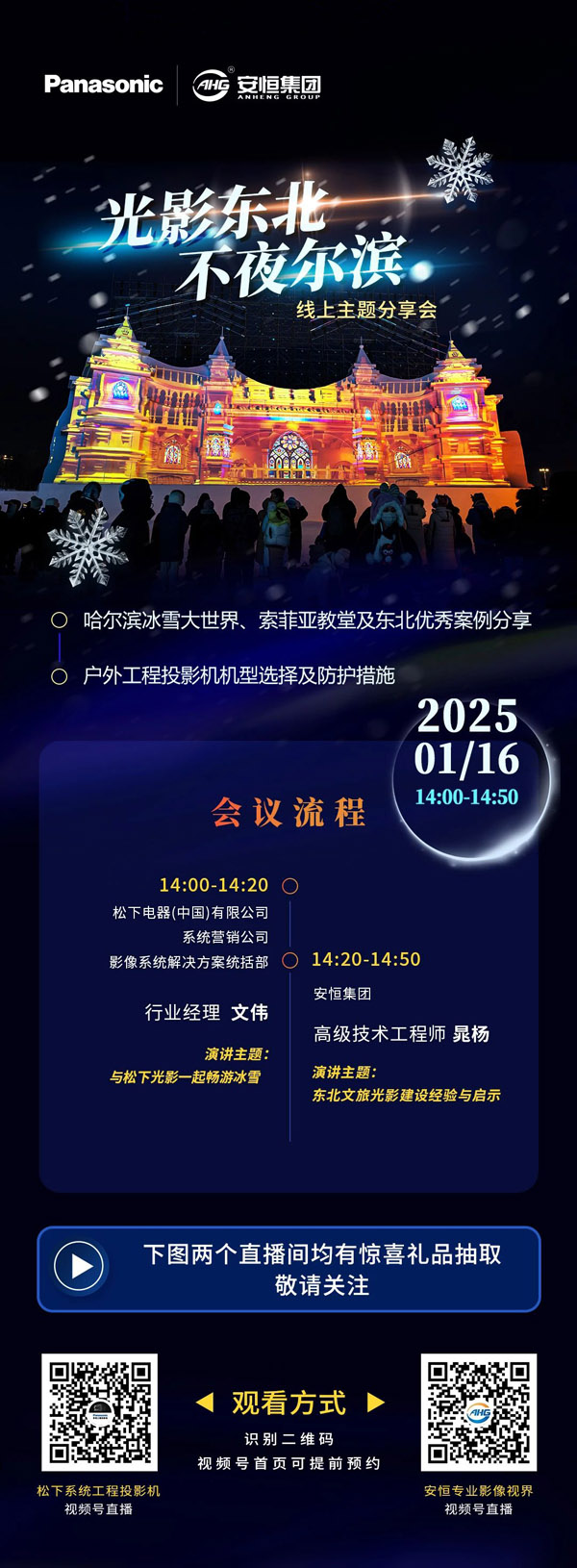由松下和安恒集团共同举办的“光影东北 不夜尔滨”线上主题分享会将于2025年01月16日下午14:00-14:50举行, 分享会将给您带来: