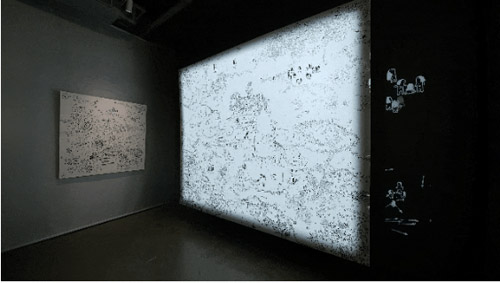 作品只留有纯粹的黑色与白色。强烈的黑白对比,依靠的是松下PT-FEQ120CL工程投影机25,000:1的超高对比度和12,400流明(中心亮度)亮度,白色高亮,黑色深邃,展现出不凡的控光能力。