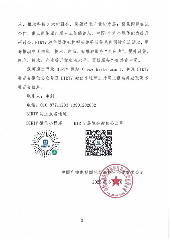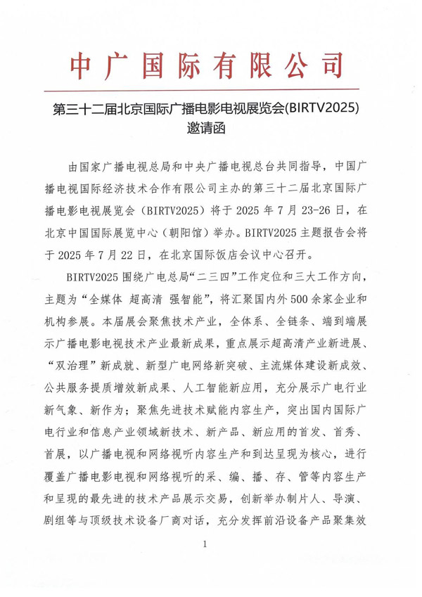 第三十二届北京国际广播电影电视展览会(BIRTV2025)邀请函