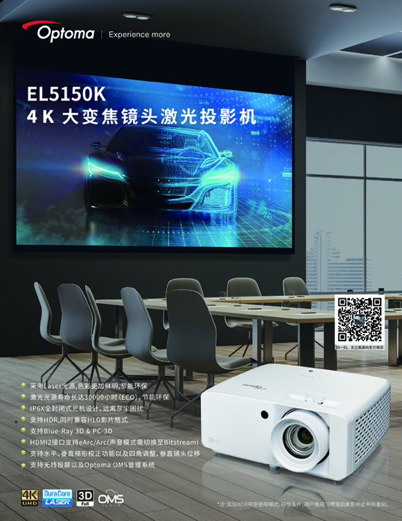 奥图码2025年重磅推出的商用投影机型,EL5150K以高流明高亮极光光源、真4K UHD、智能管理系统设计,重新定义激光投影在商业领域的应用标准。
