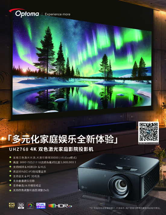 奥图码 UHZ768 4K 双色激光家庭影院投影机震撼上市——多元化家庭娱乐全新体验。