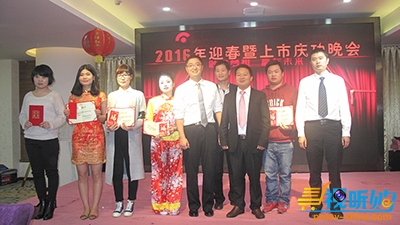 【专业视听网报道】:羊舞丰收岁,猴吟锦绣春,2016年1月17日晚,在这辞旧迎新之际,深圳市维冠视界科技股份有限公司在深圳民都国际大酒店盛大举行以“融合梦想,赢在未来”为主题的2016迎新年会暨上市庆功晚会,维冠视界全体员工、各分公司、办事处及加盟办事处、供应商及合作伙伴欢聚一堂,共迎新春。