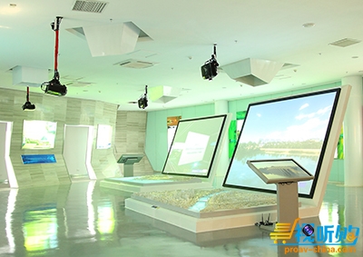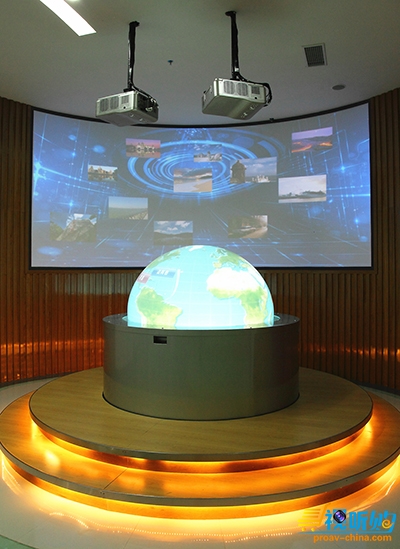 此外,位于展览馆交通规划区展厅中心位置,名为“世界看陵水”的半球幕也是一大亮点。交通规划区由3台Vivitek(丽讯)D6510工程投影机打造,通过互动投影的方式使观众了解陵水县整体交通体系,特别是陵水县与外界的交通联接。在没有任何触摸查询动作的情况下,半球幕播放陵水县交通影片,而当观众触摸球体时,陵水县及各乡镇交通规划的图文资料便会同步出现在球体上。既增强了展览展示的互动性和趣味性,又可以使观众身临其境,仿佛置身于整个交通系统中。