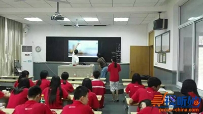 而当打开电源时,中间一块显示出液晶的显示画面,它更多的强大功能也所之显现:电脑的上网浏览功能、液晶白板的触摸互动及音视频功能、投影机的视频功能和电子白板的功能……具体到教学过程中,我们能对多媒体USB 所读取到的课件文件进行自动归类,可快速分类查找office 文档、音乐、视频、图片等文件,检索后可直接在界面中打开。同时可轻松实现windows 系统中常用的教学应用功能,如书写、Office 软件使用、网页浏览等;智能黑板互动支持两人同时进行书写,且可调用视频、图片、音频等多媒体素材文件……