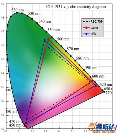 革新永不止步,近年来“激光光源”成为DLP显示单元的新趋势,凭借着高亮度与兼顾色彩、寿命的优异表现,逐步有取代LED光源的势头。激光光源的优势在于亮度的显著提高,然而作为新技术,早期不够成熟的激光DLP产品不可避免的出现短板,如:存在色轮损耗,寿命仅有20000小时;亮度均匀性不够高,色域表现与LED光源和UHP光源相比不够完美等。