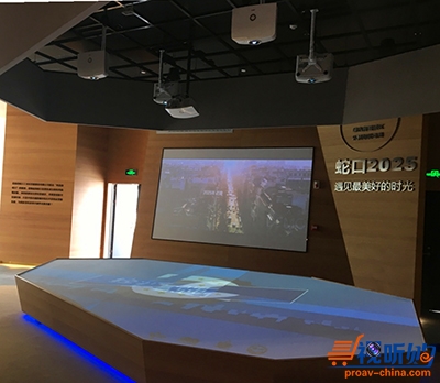 蛇口展示中心邮轮母港体验区的日常片源均为高质量高色彩高饱和度的影片,此展示项目采用了7台Vivitek(丽讯)DW6851工程投影机,分别打造了3通道和4通道沉浸式大屏投影方案。DW6851具有7200流明亮度3000:1对比度,物理分辨率为WXGA(1280×800)级别,最高可支持WUXGA (1920 x 1200)级别;支持蓝光、IR、DLP-Link3D全系统3D,适合单机3D播放及主动3D融合拼接等多种应用,内置HDBaseT接收器,可通过RJ45网线长距离传送视频、音频及控制信号,另外还支持2.35:1电影比例、镜头记忆功能、360°倾角吊装设计、7个全电动镜头等功能,优异的整体性能可以轻松应对展览展示、会议系统、监控系统、集成工程等各种室内外复杂环境的需求。