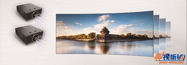 以DET-S65WU激光工程投影机为例,具备6500流明、对比度15000:1、分辨率1920×1200、支持全3D、激光光源20000小时超长寿命等优点。另外,还有完美的拼接融合的功能,比如,通过2通道融合系统,可将两台投影机的屏幕无缝拼接融合后投射到5.5×2.7米的屏幕上,即可呈现超大画面、亮丽色彩、高分辨率、无缝统一的显示效果,它比普通的投影系统具备更大的显示尺寸、更宽的视野、更多的显示内容、更高的显示分辨率以及更具冲击力和临场感的视觉效果。