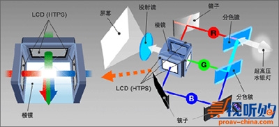 LCD是Liquid Crystal Display的缩写,顾名思义是液晶投影仪,是将红、绿、蓝三色液晶板上,通过透镜放大和反光镜透射出。液晶投影仪中的光源是金属卤素灯或UHP(冷光源)。
