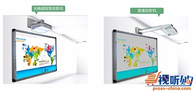 光峰激光教育投影机AL-UW320依旧是一款超短焦产品,采用反射式超短焦设计,使得打破投影机对距离的限制,0.233的投射比,做到100吋的投影画面只需50CM。避免了普通投影机光线刺眼、阴影干扰等问题。演讲者站在屏幕前,不再受到炫目的投射光干扰而影响讲解。