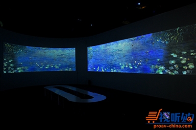 【专业视听网报道】:法国印象派大师莫奈穿越时空,2016年9月15号中秋之际在上海呈现一场艺术界的盛宴。莫奈多媒体艺术展览经过全新的升级制作,用现代多媒体与艺术互动的形式,把“注重人与艺术的互动”这个理念贯彻到极致,融入更多元化的美陈装置,花艺场景、多重音乐融入、3D Mapping技术及智能互动体感等设置打造沉浸式艺术展新体验。46台AVANZA激光工程投影机展现出的完美画面给上海观众带来全新的艺术普及体验。