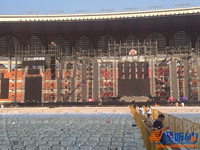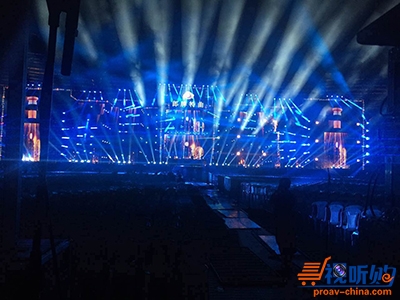现场音响系统采用了L-Acoustics V-DOSC双十五寸线阵列音箱作为主舞台的主扩音响,舞台前区补声选用L-Acoustics dV-DOSC双八寸线阵列音箱,超低音箱选用L-Acoustics SB218双十八寸超低音箱。