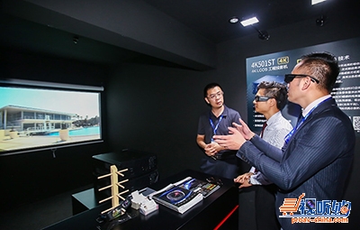 展会现场,由佳能倾力打造的3D 4K影院,吸引了众多现场观众的驻足体验。3D 4K影院采用佳能4K LCOS工程投影机4K501ST,该款投影仪具有最高5000流明亮度,采用了代表佳能高性能的L级4K广角变焦投影镜头,支持多机投影,可在凹凸表面、曲面或者穹顶投射影像,能够流畅播放60帧/秒的4K画面,同时还支持动态模糊减弱。4K501ST除了能够满足模拟仿真、设计规划、美术馆及博物馆等应用领域的需求外,还将利用小型化的特点满足包括企业、医疗、教育机构、数字标牌等领域的新市场需求。凭借佳能的影像核心技术优势,配合INFITEC 3D技术,4K501ST以全像素显示出高亮度的均匀立体图像,模拟出色彩鲜艳、纵深感强、有出色沉浸感的3D场景,为现场观众呈现了一个具有临场感的高分率4K影像立体化视觉空间,让他们近距离体验与感受3D 4K影像的独特魅力。