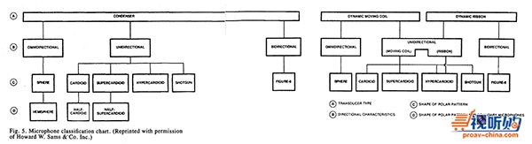 需要注意的是,无论是电容还是动圈传声器都可以被设计为任意指向特性(除了双指向动线圈设计以外)。带式传声器要么是双指向设计,要么是混合心型指向设计。图5是根据换能器类型和指向特性划分的传声器分类表。